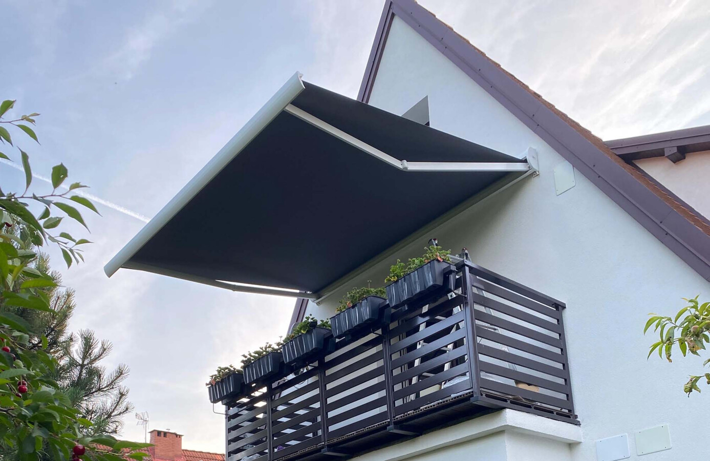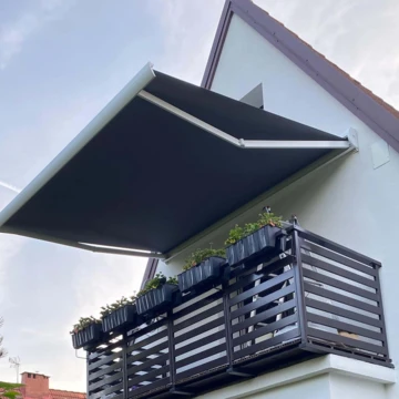 La banne a bras articulé est disponible avec les dimensions maximales 5x3m, la cassette est disponible en plusieurs variantes. Son coffre est reconnaissable pour sa solidité. Le fonctionnement peut se faire par manivelle soit électriquement grâce au moteur.